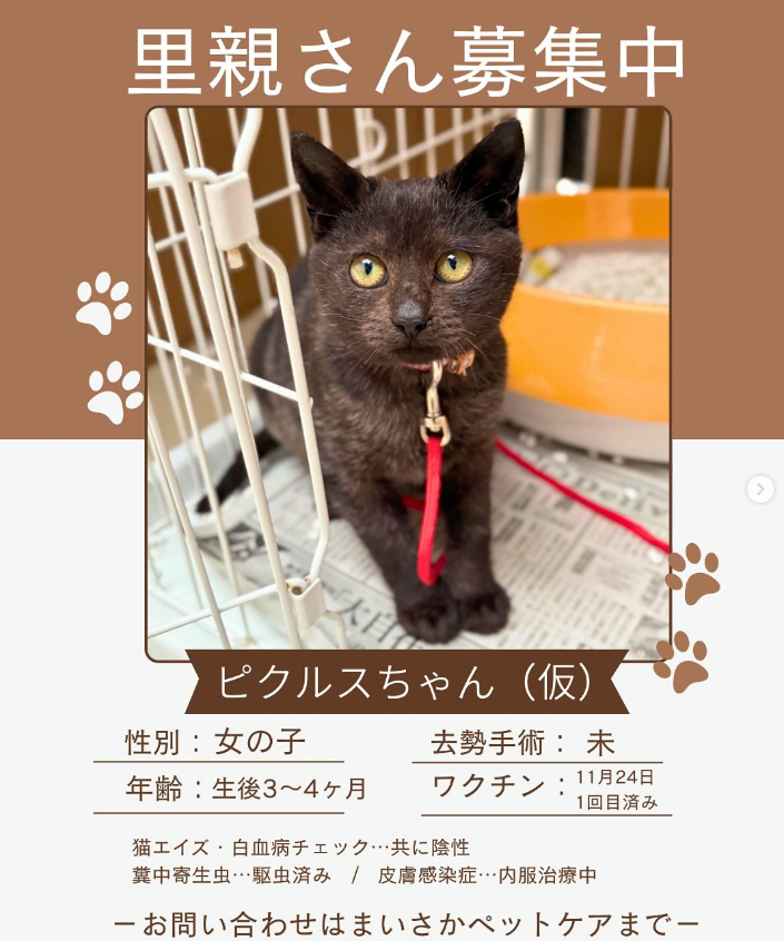 現在まいさかペットケアでお世話をしている子猫の里親さんを募集しています